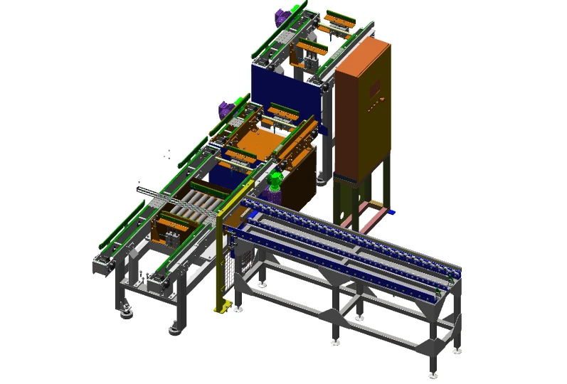 A solução realiza a retirada do produto finalizado de uma máquina e o deposita com precisão na entrada da próxima etapa do processo, assegurando posicionamento correto, repetibilidade e ciclos contínuos.